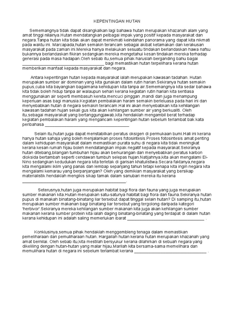 Contoh Karangan Spm Kepentingan Hutan